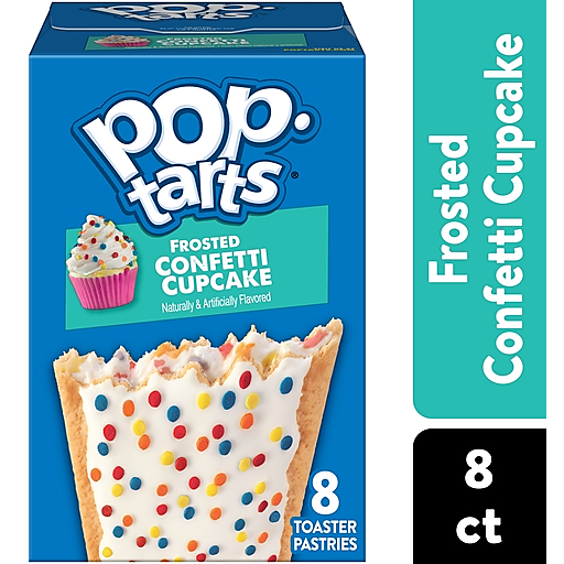 Pop-Tarts toaster pastries are the perfect sweet treat at breakfast, for lunch snack time, or dessert. Featuring a sweet confetti cupcake-flavored filling and sprinkles on a soft pastry crust, this ready to eat treat is perfect for snack time for kids and adults on the go. Pack Pop-Tarts Frosted Confetti Cupcake in lunchboxes or backpacks when it's time for school snacking, or stock the office pantry with this individually wrapped grab and go adult snack time choice. Pop them in the toaster and pair with milk, create your own ice cream sandwiches, or incorporate into your favorite dessert recipe for a sweet treat. These irresistible snack time options for kids and adults provide a good source of three B vitamins. Stock your pantry with these shelf stable snack alternatives and enjoy ready to eat treats anytime. A flavor for everyone, including beloved classics like Frosted Strawberry or Frosted Cherry, or our more indulgent flavors, Frosted Cookies and Creme or Frosted Chocolate Fudge.